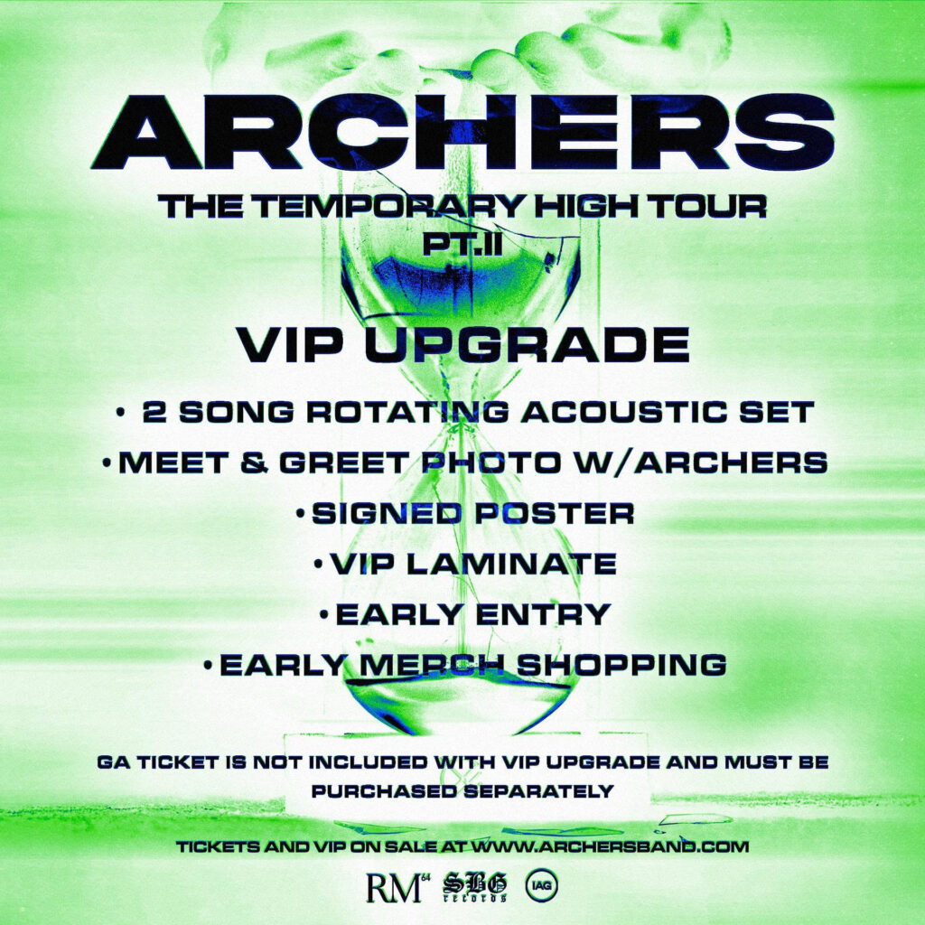 The announcement follows the release of Archers’ newest single, “Crooked Smile,” now streaming on all major platforms. The track is taken from the band’s brand-new EP, Temporary High, released via SBG Records, and has already begun making waves with fans and press alike.