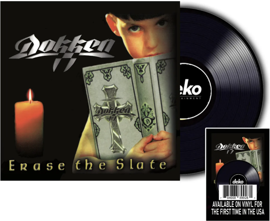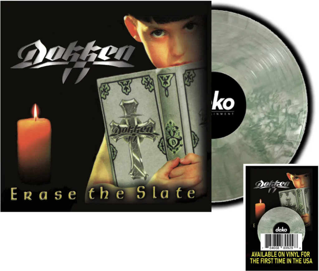 Now it is available through Deko Entertainment for the first time in the United States on 180g vinyl. Completely remastered, repackaged, and limited to only 500 copies of each variation including a beautiful Green Smoke and classic Black. Erase the Slate includes stand out tracks “Erase The Slate”, “Change the World”, as well as a cover of the Harry Nilsson song “One” made popular by the Three Dog Night. This is a must have for any Dokken fan!