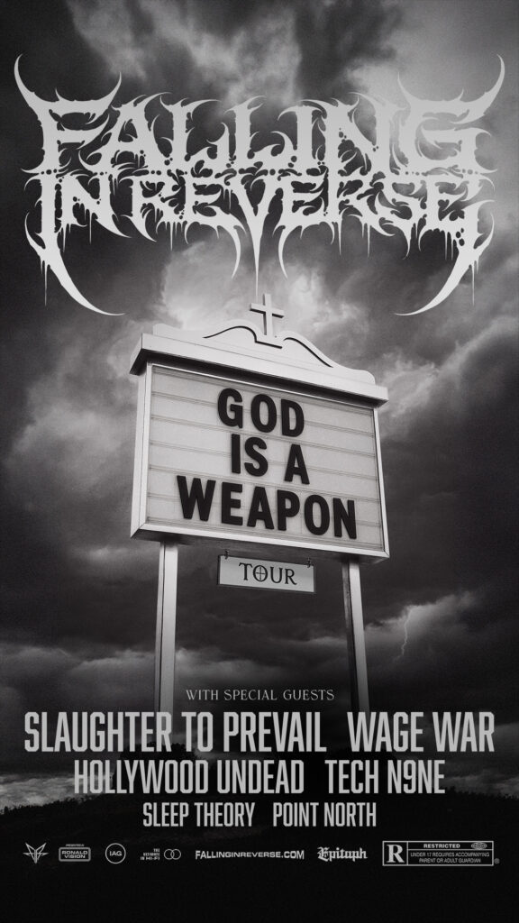 Falling In Reverse are hitting the road this week for a massive North American headline tour that will again see the band playing amphitheaters. The “Falling In Reverse: God Is A Weapon Tour,” produced by Live Nation, kicks off August 10 in Denver, Colorado and runs through September 26 in Las Vegas. Wage War, Tech N9ne, and Sleep Theory will serve as support from August 10 through August 27. Slaughter to Prevail, Hollywood Undead, and Sleep Theory will appear from August 29 through September 7. The final leg will feature support from Slaughter to Prevail, Hollywood Undead, and Point North. All dates are below. Get tickets here.