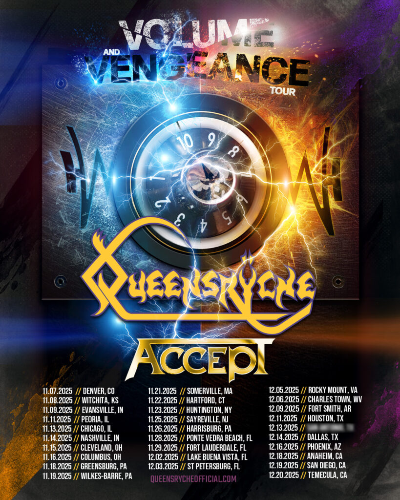 Progressive metal legends QUEENSRŸCHE are excited to announce they’ll be hitting the road this coming fall on the “Volume and Vengeance Tour” alongside special guests Accept. The tour will kick off on November 7th in Denver, CO at Summit and will conclude on December 20th in Temecula, CA at Pechanga Theater Casino. Ticket pre-sales begin tomorrow and the general on-sale is Friday. For a full list of dates, please see below.