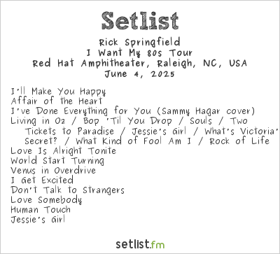 Rick Springfield’s I Want My 80s Tour made a stop again this year in Raleigh, NC at the beautiful Red Hat Amphitheater in downtown Raleigh on June 4. Rick headlined again, duh, and put on quite a show (as always). If you’re not familiar with this, Rick has been doing something that has been his signature move over the last few tours. He takes a bouquet of roses (supplied to him by his crew as well as ladies in the audience) and smashes them against his guitar causing petals to fly everywhere. By the end of the show, the stage is covered in rose petals.